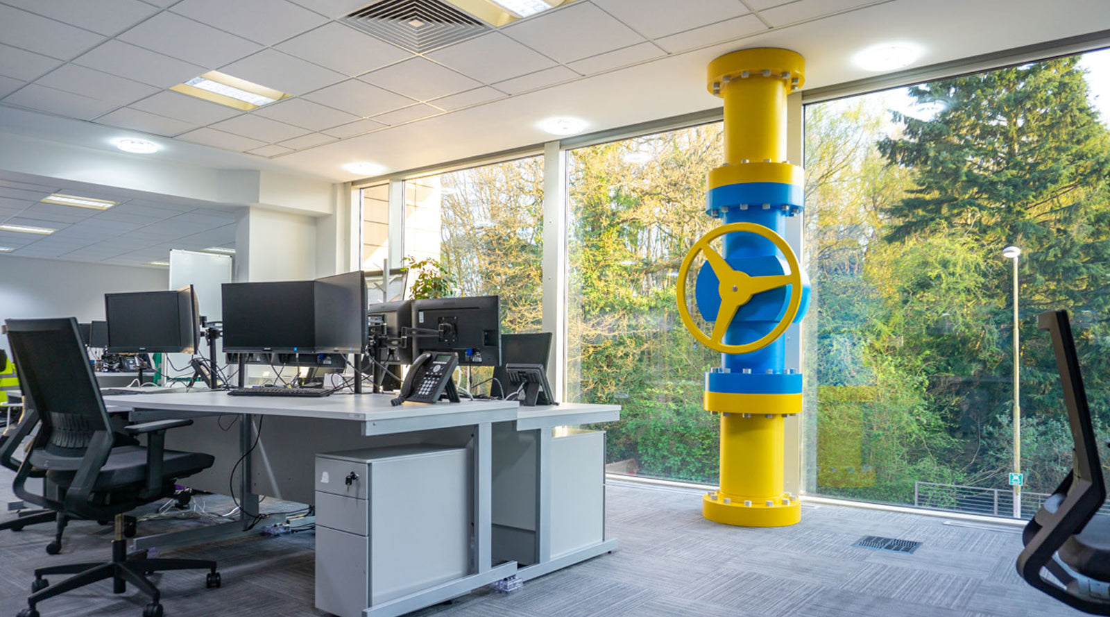 Giant pop art style gas supply pipes run floor to ceiling through Utilita’s offices!